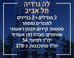 “החברה לשימור והתחדשות ערים בישראל בע”מ“ מתכבדת להציע לכם לקדם את הבנייה בבנין המגורים שלכם במסגרת של התחדשות עירונית. יש לכם הזדמנות לקבל בית חדש, גדול יותר, בעל ערך רב, בבניין מפואר עם לובי, מעליות, חניות פרטיות ומפרט מפנק.